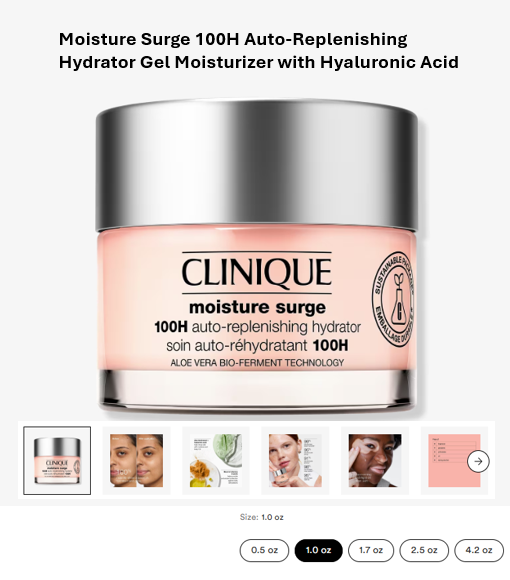 Moisture Surge 100H Auto-Replenishing Hydrator Gel Moisturizer with Hyaluronic Acid 1.0 oz